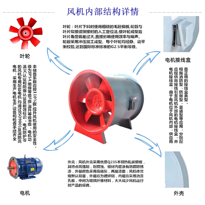 對屋頂消防排煙風機和風機箱,所需電機功率是指在待定工況下,加上機械損失與應有的儲備量而言,并非出風口全開時所需的功率,如風機的出風口不接管道或未加外界阻力而進行空運轉,則電機有燒毀的危險,為了安全起見,應在風機的出風口或入口管路加上閥門,起動風機時關閉,運轉后將閥門慢慢開啟,達到規定工況為止,并注意屋頂消防排煙風機電流是否超過規定值。